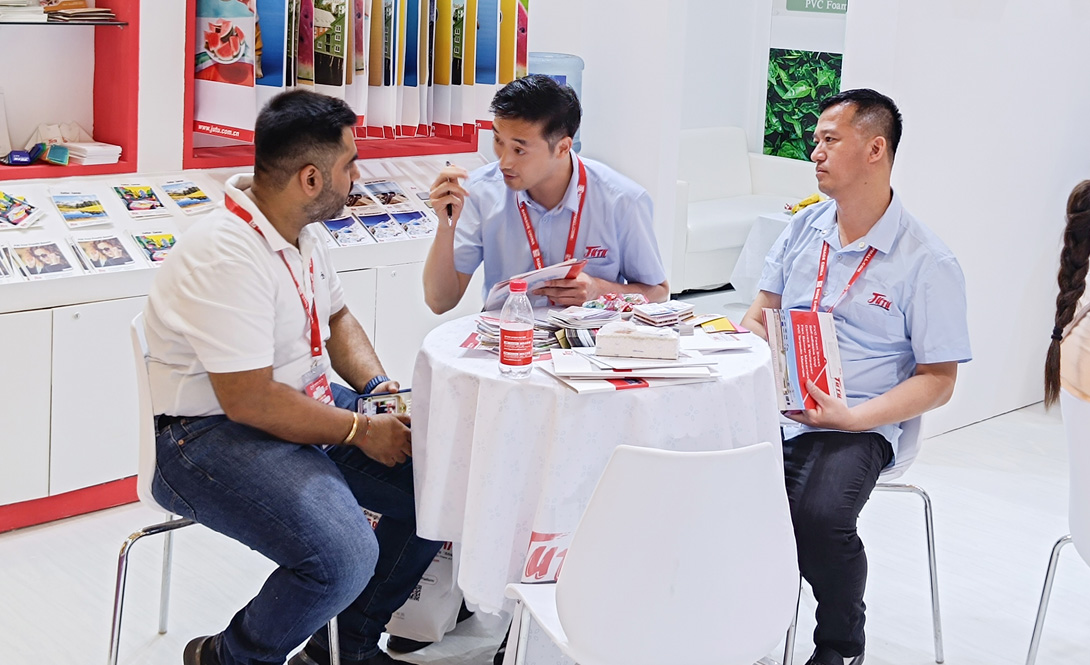Większość klientów jest zainteresowana płytami z pianki PCV, winylami samoprzylepnymi, produktami ekologicznymi i naszymi nowymi naklejkami magnetycznymi. Niektórzy klienci przynieśli własne próbki i mają nadzieję znaleźć odpowiedniego dostawcę.